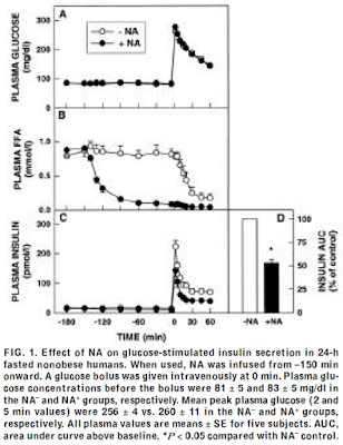 causes obesity, given ad lib food. Unlike the Laron individuals with their genetic oddity of long term preserved insulin sensitivity, NE people will eventually distend their adipocytes to the level of leaking free fatty acids.