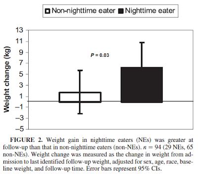 *Aside: But they are learning! Quote of the century from the paper: "These differences in substrate oxidation and SPA indicate that the night eating behavior phenotype may have physiologic underpinnings"
